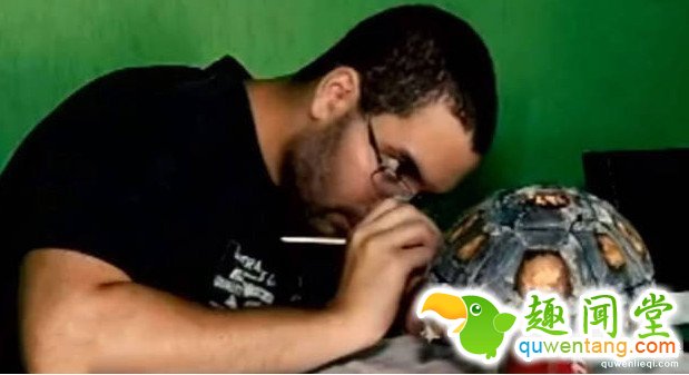 他们将新壳进行了手绘。按照真实龟壳的样子细心给新壳画上纹路,使它看起来更加逼真自然。
