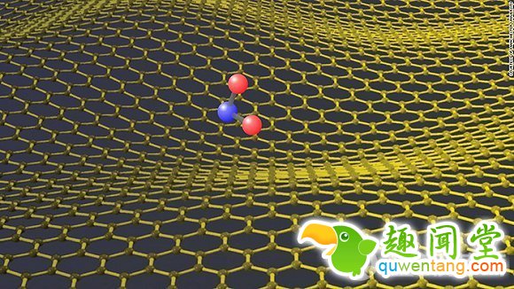 一个二氧化氮分子被隔在单层石墨烯的外部。石墨烯的高阻隔性是得到公认的。图片来源:网络