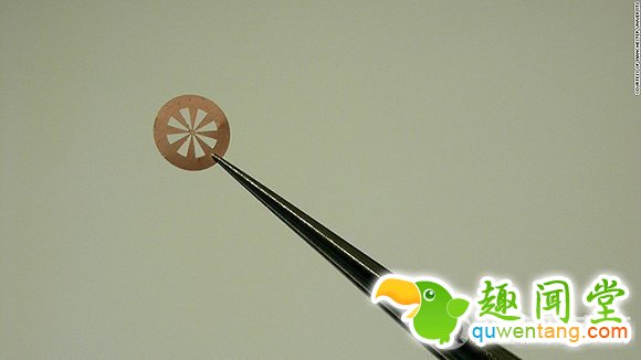 放大了的表面被钻了孔的单层石墨烯的研究样本,肉眼可见光穿过薄膜。图片来源:网络
