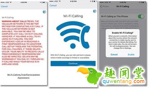 AT&T推出此项服务便是为了弥补某些区域手机信号覆盖不足的问题。据了解,目前已有不少测试者回应称成功激活了该功能。当用户启用“WiFi Calling”的时候,iOS会自动弹窗作简要说明。在同意使用条款并看过警示语之后,用户就可以顺利激活并启用该功能了。