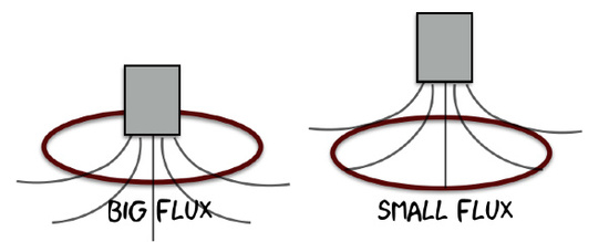 对于磁场,我们可以做同样的事。我们称之为磁通量。磁通量取决于磁场强度、磁场与面积所成角度以及面积的大小。