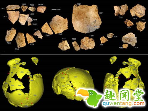 尽管头骨化石出土时已经破裂成碎片,但其中1号年轻男性头骨和2号成年人头骨保存相对完整。