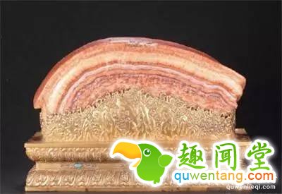 现藏于台北故宫博物院的这块东坡肉形石,是镇馆之宝,正是出自慈禧老佛爷的陵墓。整块肉形石色泽纹理全是天然形成的,从未有任何人工痕迹,一眼看上去如同是一块栩栩如生的"东坡肉"。