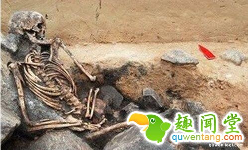 考古学家宣布,他们在德国中部对几个年代可追溯至石器时代初期的坟墓进行了大规??脊磐诰?,从中发现了镶嵌有狗牙的首饰和一具以坐姿埋葬的女尸骨胳。
