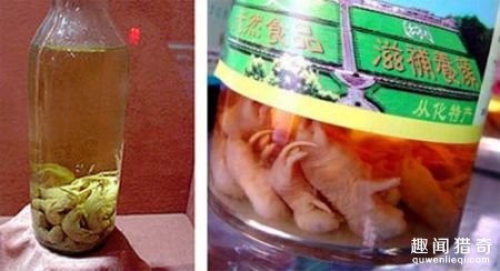 鼠仔酒,看上去有点不忍直视,使用刚出生还未睁眼的无毛小老鼠,据说是天然美容和强身佳品,来自我们中国广东。