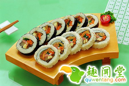 味道: 日本寿司口味较多样化,视材料搭配而定。 韩国紫菜包饭味道清甜,有着淡淡麻油香味。