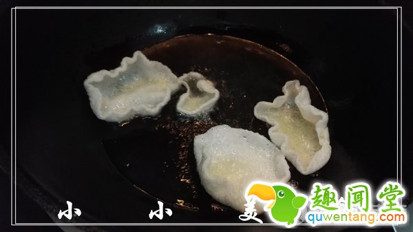 3、开始放虾片:一次放个4.5.6片,不要太多,因为虾片遇热油膨胀得很快