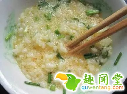 1、一碗剩米饭用2勺酱油、少许料酒和糖,再加少许油拌匀;
