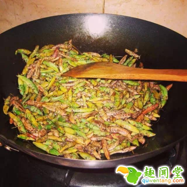 乌干达特产 就是长角蚂蚱啦!可炸可炒也可以晾干或水煮 据说配洋葱更是绝顶美味!
