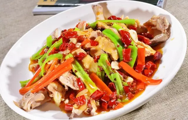 东安子鸡,因用刚开鸣的小公鸡烹制而成,故名。本菜特色是特点:用嫩母鸡和红辣椒煸、烧而成。菜色呈红白绿黄四色相映,鸡肉肥嫩,味道酸辣鲜香。