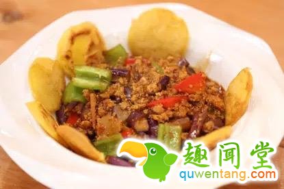材料:长茄子 肉馅 鸡蛋 洋葱 青椒 红椒 西瓜 哈密瓜 蒜 葱 姜 豆瓣酱 番茄酱 料酒 酱油 海鲜酱油 白醋 香油 油 玉米淀粉 绿豆淀粉 白糖 鸡粉