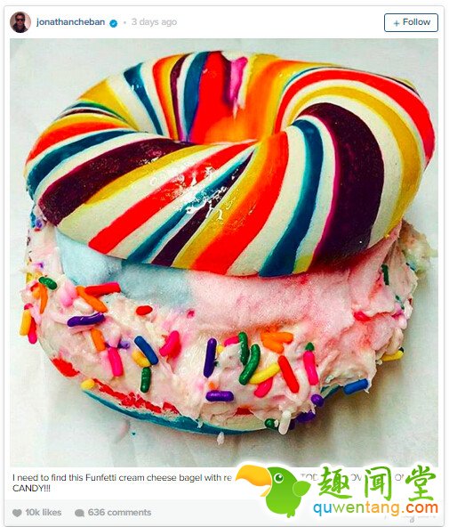 彩虹贝果风靡布鲁克林 或成下股美食旋风