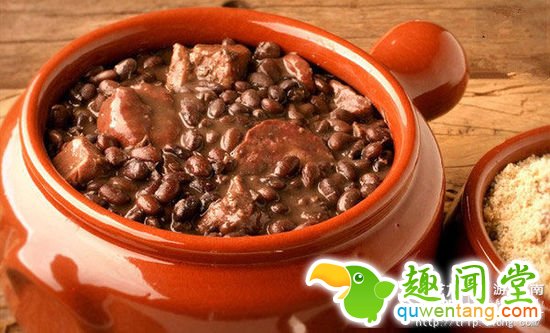 别小看这个,这可是巴西的“国饭”,享用它的时候,仿佛你在经历一场舌尖上的狂欢节。巴西豆饭主要由米饭、黑豆和猪肉炖煮而成,因此颜色黯黑,味道香辣。在里约热内卢的馆子里,巴西豆饭通常是一煮就是一大锅,里面有切成小块的猪肉,还有一些主流菜品淘汰下来的,不那么常用的食材。比如猪耳朵、猪舌头和猪尾巴。因此小编请你牢记,这种饭不是所有人的肠胃都能消化,吃饱以后一定坐在沙发上休息一下,千万不要立刻去依帕内玛的海滩玩水。
