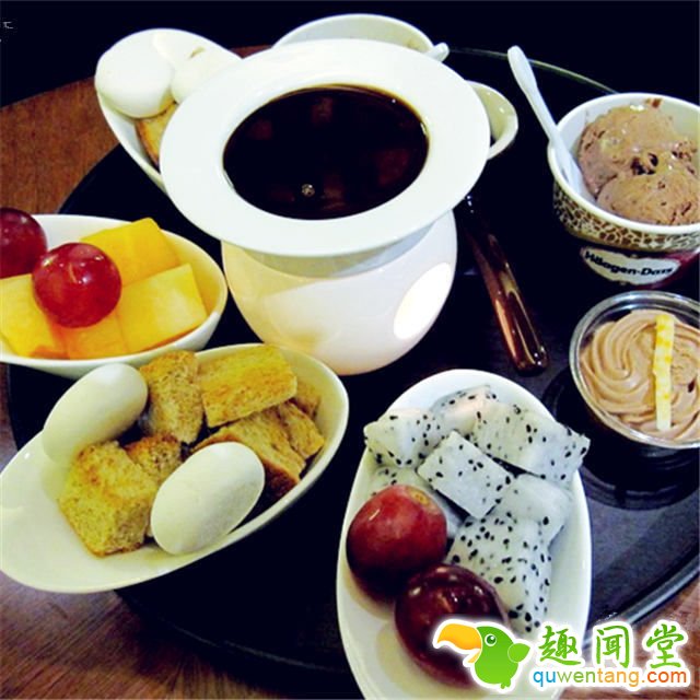 这里的巧克力体验不同于其他家,除了巧克力蛋糕、手工巧克力这样的经典吃法,超诱人的熔岩蛋糕,尤其是巧克力火锅,都是吃巧克力的新境界,罪恶级别超高哦! 巧克力的味道很正,很细腻,清爽的火龙果、哈密瓜蘸一蘸巧克力,巧克力的苦搭配水果的甜,一口一个满足!