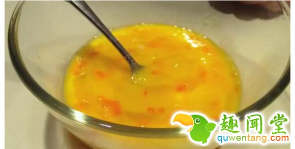 3. 放在蛋液里搅匀。(放少许盐和胡椒)