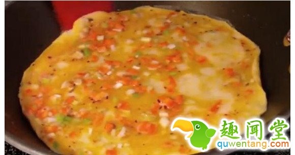 4. 煎蛋饼。(蛋液不要全部用完,留少许一会有用)
