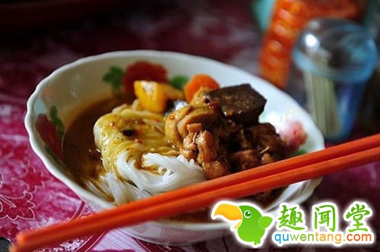 米粉往往会作为早餐食物。它由米粉和用柠檬香草、姜黄根以及泰国酸橙制作而成的青咖喱组成,上面覆有薄荷叶、豆芽、绿豆、香蕉花、黄瓜和其他蔬菜。