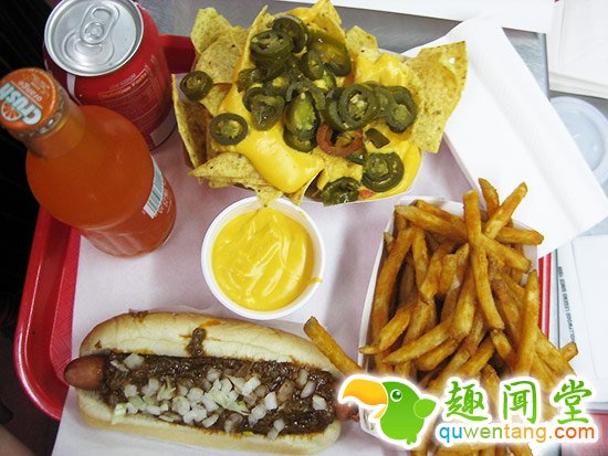 洛杉矶人喜欢吃热狗,还喜欢拿热狗当夜宵。每年,他们会吃掉9500万只热狗,让美国其他城市的居民望尘莫及。这些热狗摊一般设在俱乐部外面,以熏肉传统热狗为主。但是,洛杉矶也有新颖的咖喱热狗,La Brea大道的Pink’s热狗店就两种并包。这里的咖喱热狗加了墨西哥辣肉酱、奶酪、洋葱和芥末,口味独特,而且分量很足,您最好空着肚子来,好大吃一顿。由于,美国影星比尔·科斯比、老牌女星贝蒂·怀特和好莱坞明星斯蒂夫·马汀是这家店的??停凑饫锍匀裙?,您还有机会一睹星光。。