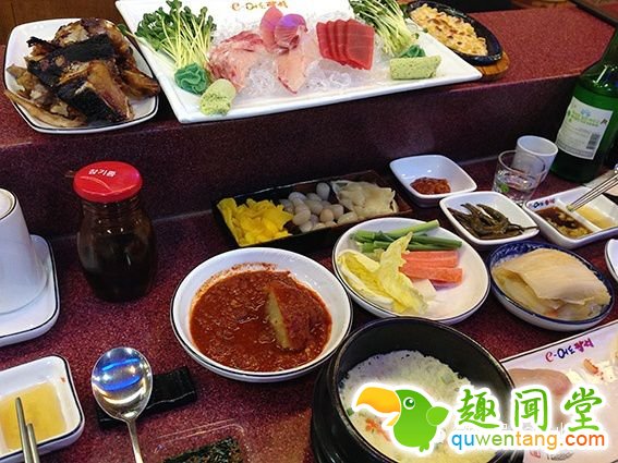 还有很多没有放上来,土豆汤(其实是土豆排骨炖锅),烤鸡脚,冷面烤肉(有的会放冰块),拌饭 ,以及无限量的各种小菜等等~