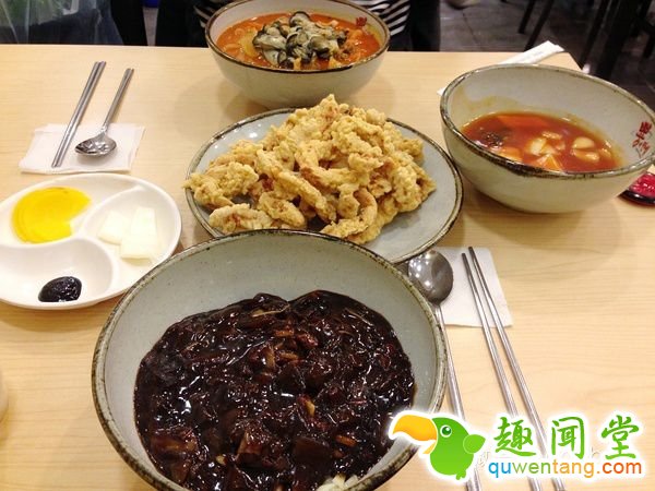 韩国炸酱面是我到首尔吃的第一餐,非常爱~酸爽的腌萝卜和酥软的软炸肉都是炸酱面的绝配哦!