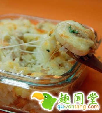 7、放入预热200度的烤箱,上下火烤至奶酪融化稍稍着色即可