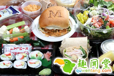 汉堡会有的,寿司也会有的,酱油是台湾产的哦。