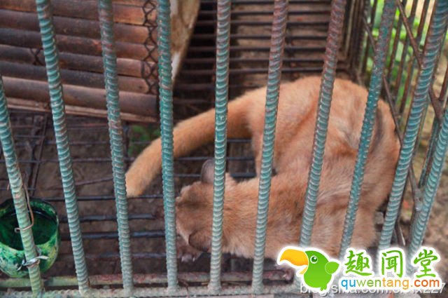 趁着麝香猫睡觉了,我在铁笼子下偷拍到了它的大便、、、、