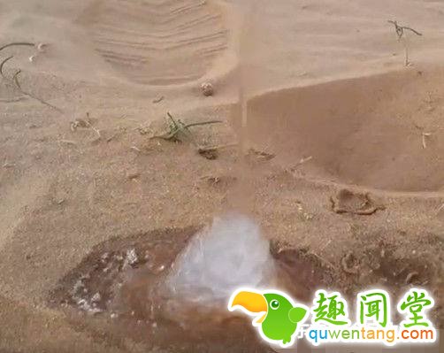 谁知道出现了神奇的一幕,水并没有渗透到沙子里,而是结成了冰,这让许多人不可思议!