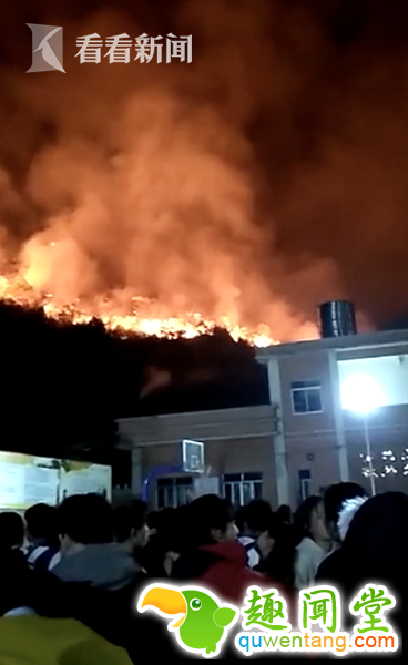 整座山都在燃烧 山下学校仍淡定开中考动员会