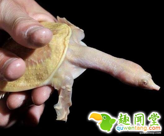 中国软壳白龟超长的脖子看起来就像…(误) 他们将长长的脖子及管状的鼻孔作为在水中的呼吸器。