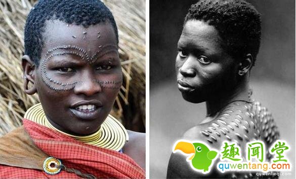 ▼2.非洲西部:疤痕。在非洲一些地区,人们用艺术性的疤痕装饰身体。这些疤痕往往会在特定的仪式上制作,当地人把它们看作美丽的象征。除了非洲,欧美等地也有人这样做,他们认为这是身体艺术。