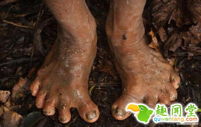 ▼因为经常需要爬树,Huaorani部落居民大多是扁平足。近亲通婚也让6个脚趾的人数大大增加。