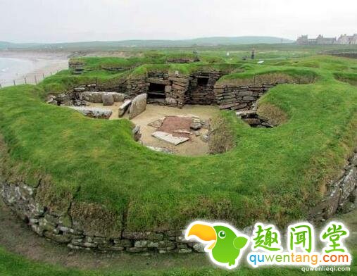 ▼经过专家的研究,这是一个名叫Skara Brae的史前村庄。8个由石头所建的矮房围绕在一起,根据推断,大约建於西元前3180年到2500年之间,是英国最古老的农业村庄之一。