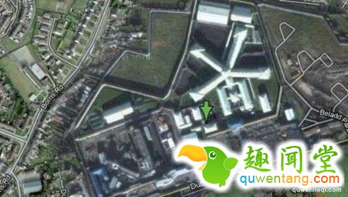 这里高度戒备,据说是因为关押着爱尔兰最危险的罪犯。它在谷歌地图上并没有被模糊,但颜色和周围的环境明显不同,这是因为谷歌地图上显示的是旧版卫星照,那些想利用卫星图越狱的可以洗洗睡了。
