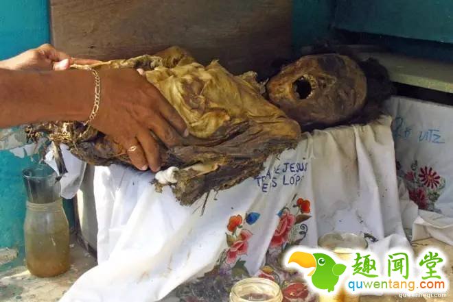 在墨西哥亡灵节上,一位妇女把自己爱人的尸骨再次取出,然后进行清理,最后重新入殓。