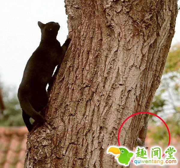 黑猫树上追捕松鼠反被玩弄近一小时