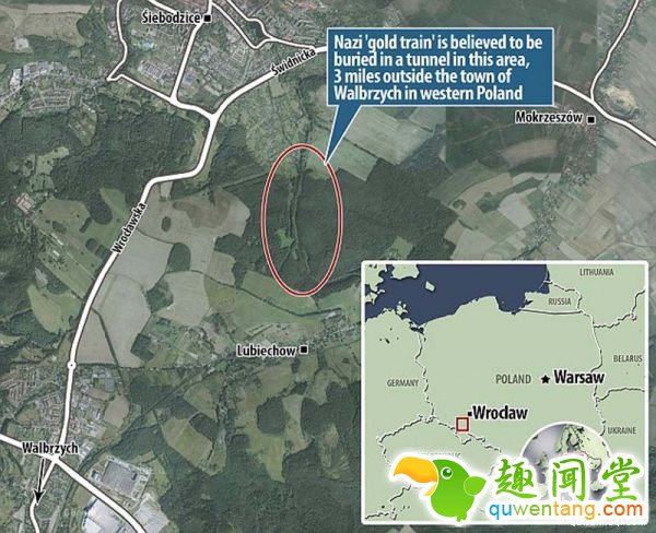 消失的纳粹「黄金列车」世纪之谜,即将解开。 一批探险家和寻宝人周二(16日)开始在波兰西南部瓦乌布日赫市(Walbrzych)附近一处地点进行挖掘,以确定传说中的「黄金列车」是否真的埋藏在该处、以及列车上是否真的藏有总值2.5亿英镑的黄金和珠宝。