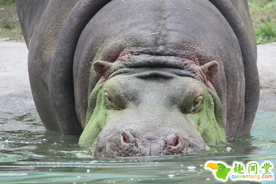 重庆永川一野生动物园内,一只河马进食后心情焦躁,见到饲养员便游到岸边向饲养员求助。