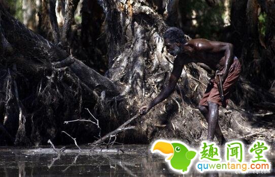 图:一名土著人正在寻找鳄鱼