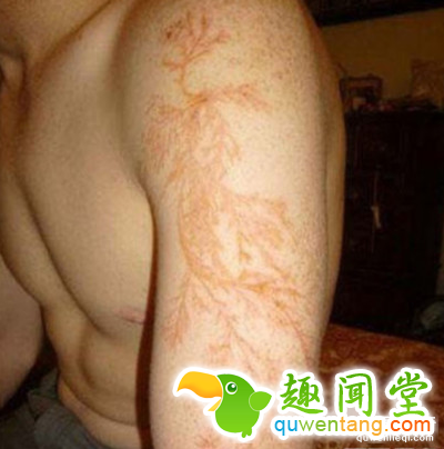 据统计,大部分被闪电击中的幸存者,身上都会带有“神秘”又美丽的“雷电纹”。