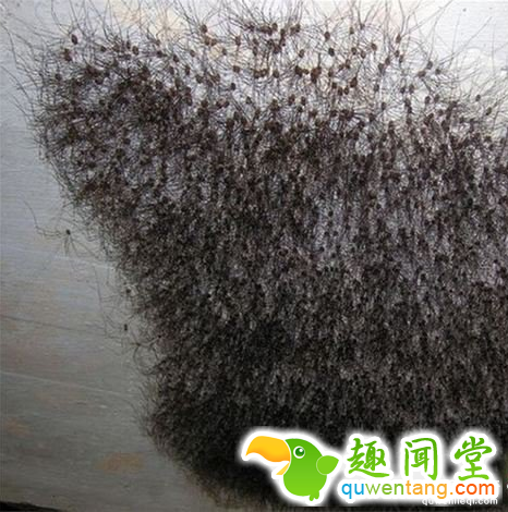 仔细一看才发现它们是一群聚在一起的蜘蛛,虽然单个看起来没有那么害怕,但是四散开来时,还是相当有冲击力的。特别时对有密集恐惧症的人来说,头皮都要发麻了。