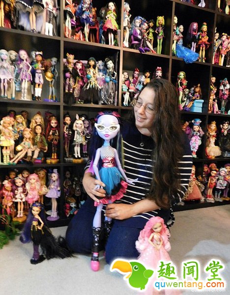 她每周花费两个小时给洋娃娃除尘,每年还会用上3天时间清洗洋娃娃给它们梳理头发。她的洋娃娃藏品从动画片中的限量版玩偶到各式芭比娃娃,应有尽有。