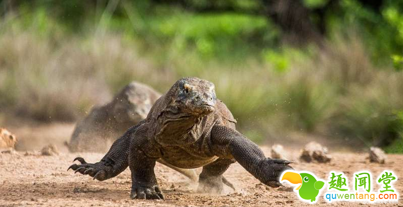 曾有研究指出科摩多巨蜥在追捕猎物时可以时速30公里突袭,画面中的两只巨蜥很快便追了上来。