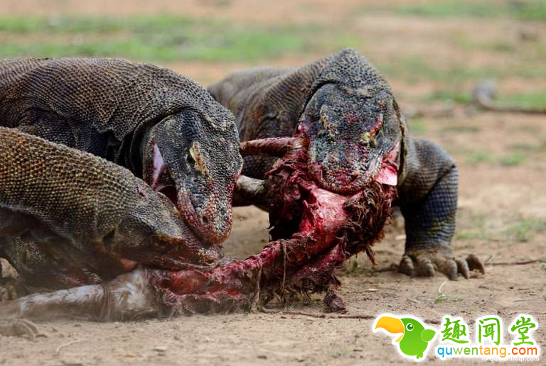 贪吃的巨蜥看到同伴叼着鹿肉便扑上去抢食,吃完后竟然一口吞了同伴的头!
