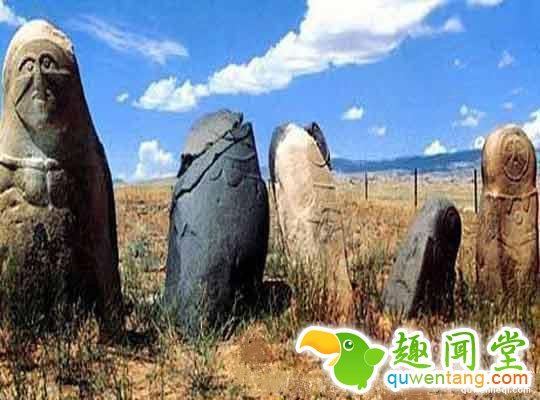 在新疆广阔的草原上,人们常常可以看到屹立着的一尊尊石雕人像。这些石人都是用整块岩石凿雕而成的。从外形看,它们大都是全身像,头部、脸型、身躯都雕得生动逼真。 如今在博尔塔拉蒙古自治州温泉县境内阿尔卡特草原上发现的阿尔卡特石人,就是用一整块白沙岩石雕凿成的。它头部雕凿出一个宽圆的脸庞,一双突起的细长眼睛和高高的颧骨,上唇有两撇八字胡须。身上雕凿出翻领大袷袢,腰部束一根宽腰带,右手拿一只杯盏举至胸前,左手扶一把垂挂在腰部的长剑。双脚刻凿出一双皮靴。古代灵巧的石匠还在它的腰带上刻出一个垂挂的小口袋和一把小匕首,石人脸部表情凝重深沉,俨然是草原上威武的将士。这些石人是谁雕凿的?属于哪个民族部落的文化遗产?学术界至今还无一致的意见,仍是一个尚待揭开的谜。