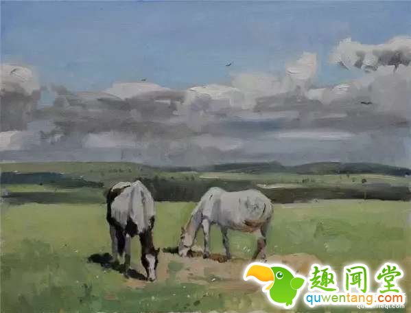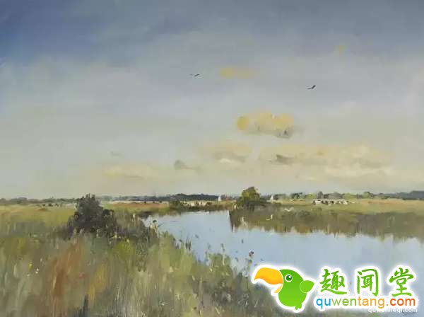 如果仅是出于对小画家的猎奇心态,Kieron的画作无法引起如此轰动。他的画作“总是含有一种超常成熟的忧伤”。他的大多数的画作描绘的是诺??丝さ男≌蚍绻?,这里有成片的草原绿树与明媚的天空,“我喜欢这儿,没有高山或丘陵,只有一望无际的天。"