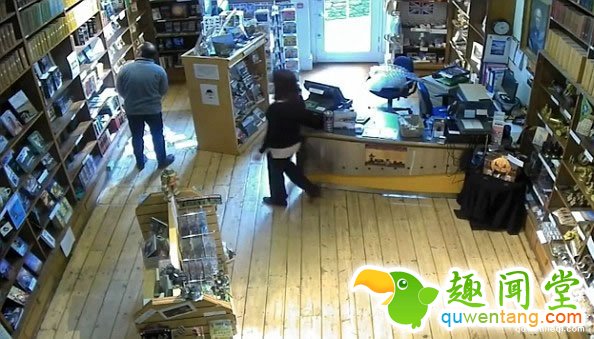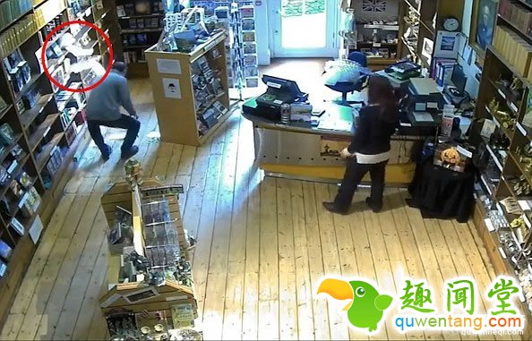英国德文郡Torquay 博物馆日前有监视录像拍到,在没有人触碰到的书架上,里面的宣传单竟然“喷射”出来。