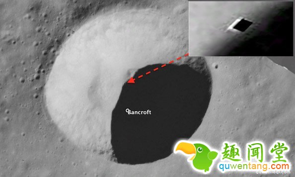 26日国外一UFO 网站上一名为Waring 网友发出一篇“班克罗夫特环形山旁的出入口”,他通过Google moon Map 发现一个疑似通往“外星人基地”的入口。