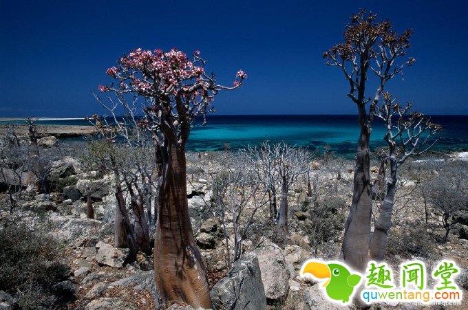 索科特拉岛的名字来自梵语,意为“极乐岛”。它位于阿拉伯半岛以南约350公里,阿拉伯海与亚丁湾的交接处,由4座小岛和2座岩石小岛组成,隶属于也门。在索科特拉岛上生存着800多种奇特稀有的植物群和动物群,其中更有三分之一的物种是索科特拉岛所独有的。
