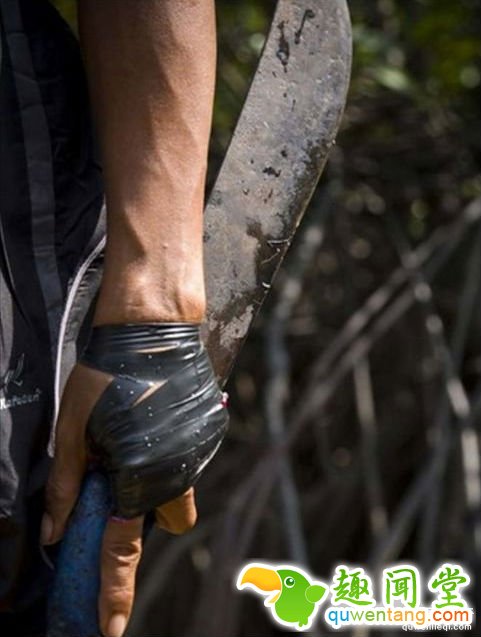 但是即使他们穷,却也是无恶不作,手上的那把大刀不知道沾满了多少人的血。图中,为摄影家实拍的一组手持大刀的海盗。